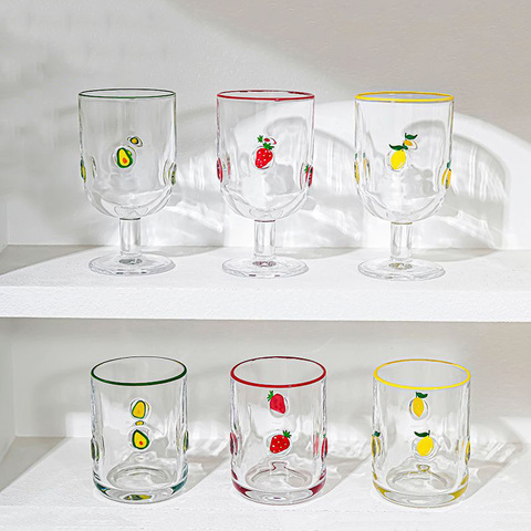Toptan el boyalı meyve cam bardak kalınlaşmış Highball içecek bardağı sevimli suyu gözlük