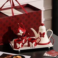 Çaydanlık ile fransız tarzı seramik çay seti zarif kelebek porselen çay seti düğün için güzel çay hediye seti